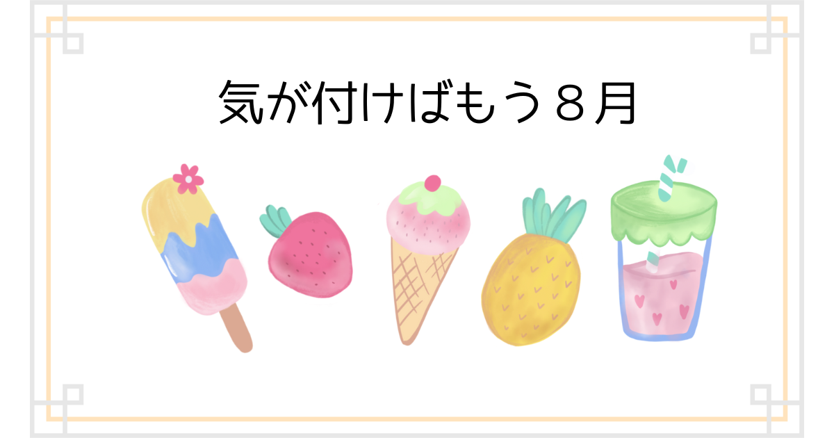 私は毎日があっという間に過ぎていて、もう8月も10日過ぎたことに白目です。